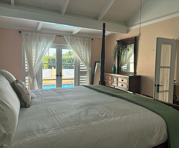AC, 55" Smart TV in bedroom, french doors out to the pool deck and bath ensuite.